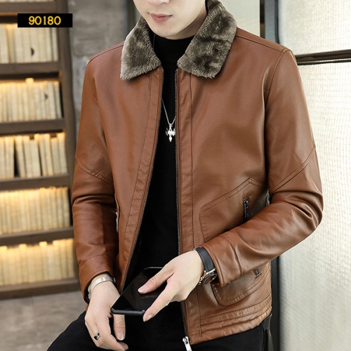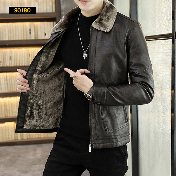 90180 남성 트렌드 슬림 기모 가죽 자켓